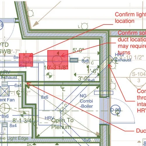 For larger homes and small commercial projects with multiple designers and engineers in multiple disciplines, this review will check how well a design is meeting the goals of the owner and end users. This review includes design notes and a design report issued with screenshots and notes. A full RediCheck audit will be performed checking relevant code, coordination, and provided details. Cost optimizations will be noted as they are encountered.